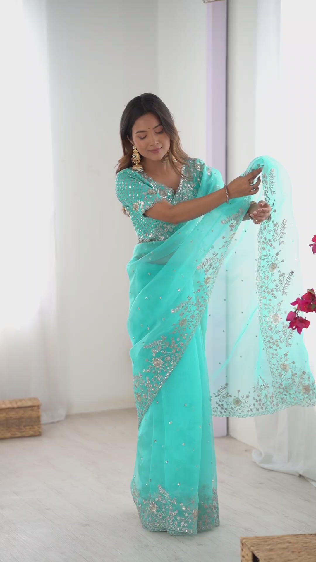 | Saree Work | Thread with Sequins Embroidery |
