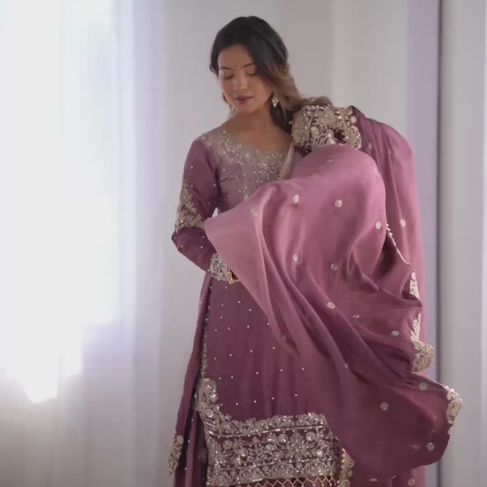 Elegant Heavy Chinon Designer Suit with Sharara & Dupatta