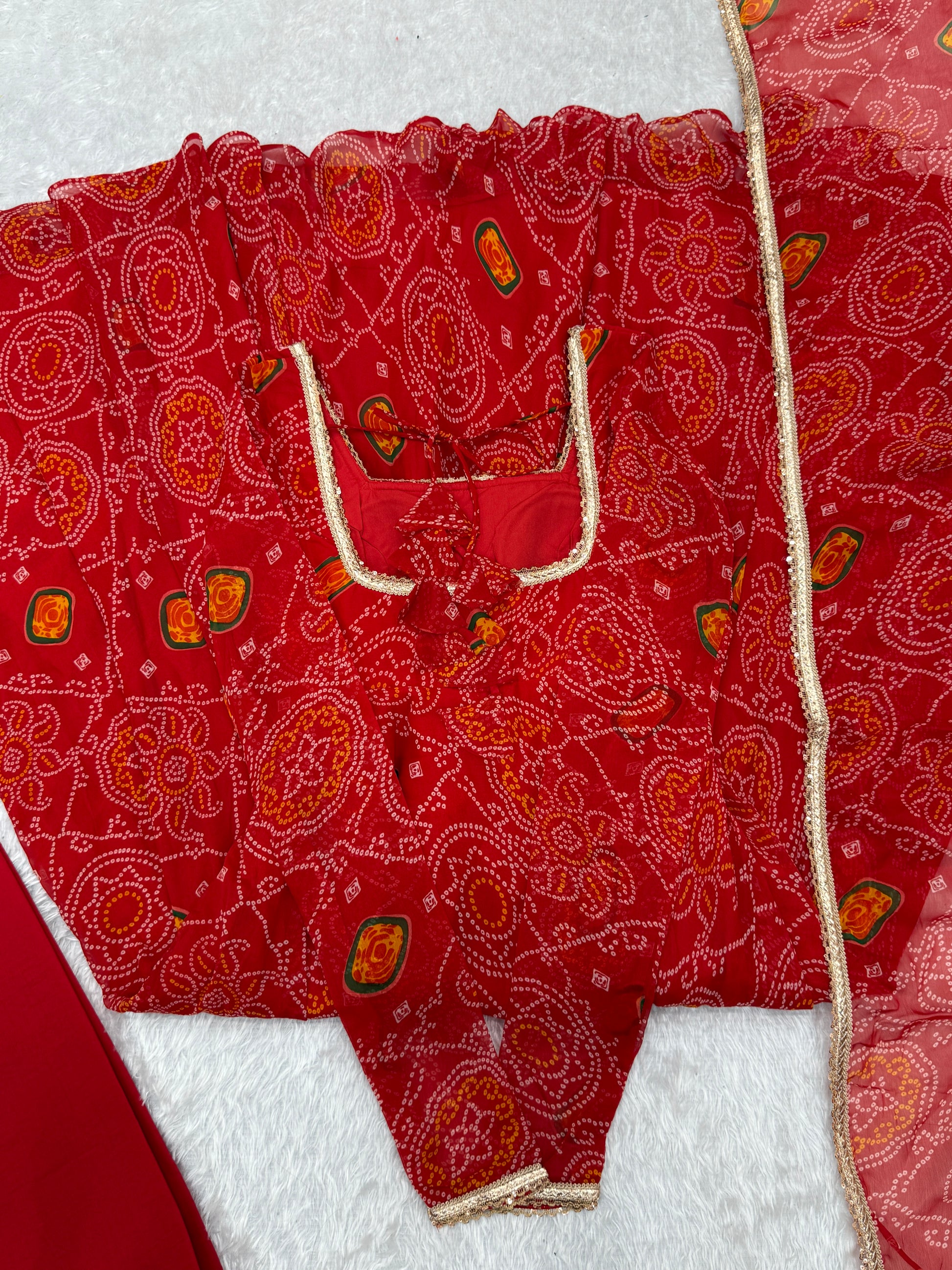 New Designer Bandhej Gown Set – Pure Soft Chiffon Anarkali with Dupatta and Pant