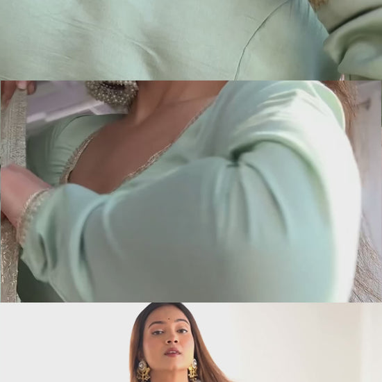 | π§΅ Work | Yoke Lace Work, Churidar Sleeves, Padded, Side Zipper, Four Layer Gathering |