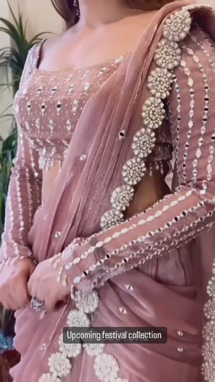 | Lehenga Saree Fit | Ready-to-wear, fits up to size 42 with elastic waistband and side zip closure |