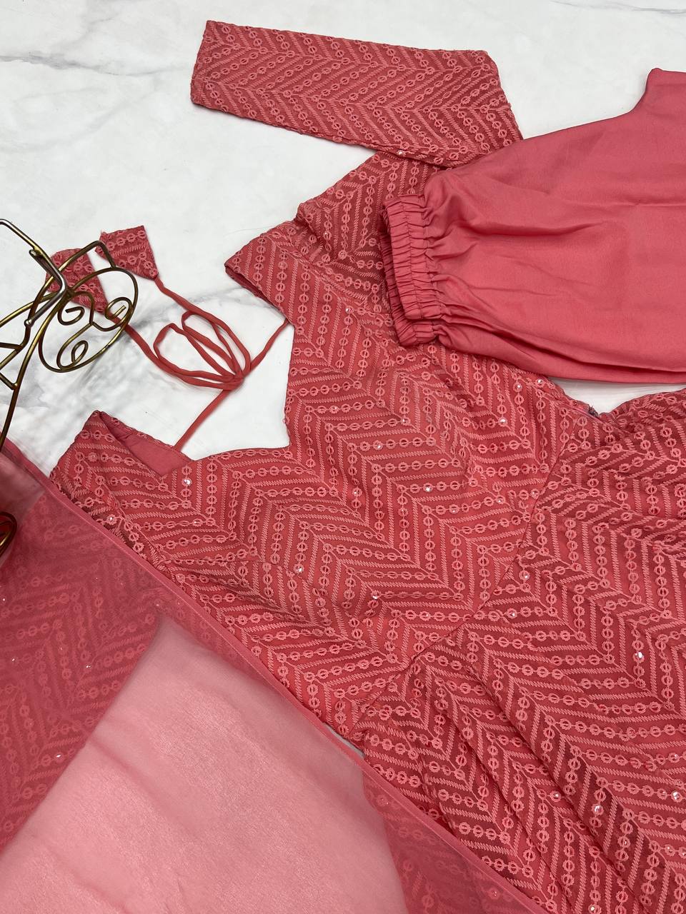 | π Anarkali Fabric | Heavy Pure Soft Fox Georgette with Lucknowi Sequin Work |